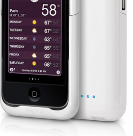 | | |  | | mophie Juice Pack Air Brand new. Only at Apple. Double your battery life with this hard-shell case. Thanks to advanced battery technology, it drains its own battery before it moves on to the one in your iPhone. Choose from three colors. |  | | Altec Lansing BackBeat 906 Wireless Headphones Customer rating With the included Bluetooth adapter, these headphones let you listen to music and talk wirelessly on your iPhone. You can answer calls and control volume and music tracks from the discreet buttons on the eartips. | |  |  | | The Weather app on iPhone puts a six-day forecast in your pocket. Add the city you're traveling to so you know what to pack. | | | Sennheiser MM50 iP Headset Customer rating Talk and rock with this high-quality wired headset. The integrated inline microphone lets you answer calls with one touch. Available in black or white. | |  | | |  | | You can try before you buy. Test-drive the hottest apps and games at your local Apple Retail Store. Just pick up an iPhone on display and start exploring. Find a store near you. | |  | | | | | | | | Great reasons to shop online. | | | See what's new in store. | | |  | | Check out customer ratings and reviews on nearly all the products in the Apple Online Store. Once you've tried a product, be sure to add your own review. | | | | | Get free shipping on orders over $50 when you shop the Apple Online Store or call 1-800-MY-APPLE. |  | | | | | | | At the Apple Retail Store, we'll help you find the perfect accessories for your iPhone. You can also come in for free technical help at the Genius Bar and even test-drive the hottest games and apps. | | | | | | | | | Some applications are not available in all areas. Application availability and pricing are subject to change. | | Some features, applications, and services are not available in all areas. See your carrier for details. | | Some products or promotions are not available outside the U.S. Product specifications are subject to change. | | The mention of third-party products is for informational purposes only and represents neither an endorsement nor a warranty. Apple assumes no responsibility with regard to the selection, performance, or use of these vendors or products. | The iTunes Store is available only to persons age 13 or older in the U.S. and many other countries; see www.apple.com/support/itunes/ww/ for a list of countries. Requires iTunes, compatible hardware and software, and Internet access (fees may apply). Terms apply. See www.apple.com/itunes/whatson/ for more information. | | Content sold separately. Available on iTunes. Title availability is subject to change. | | Google, the Google logo, and Google Maps are trademarks of Google Inc. Tele Atlas® Map data © 2009. All rights reserved. | TM and copyright © 2009 Apple Inc. 1 Infinite Loop, MS 303-3DM, Cupertino, CA 95014. | If you prefer not to receive commercial email from Apple, or if you've changed your email address, please click here. |  |  | |